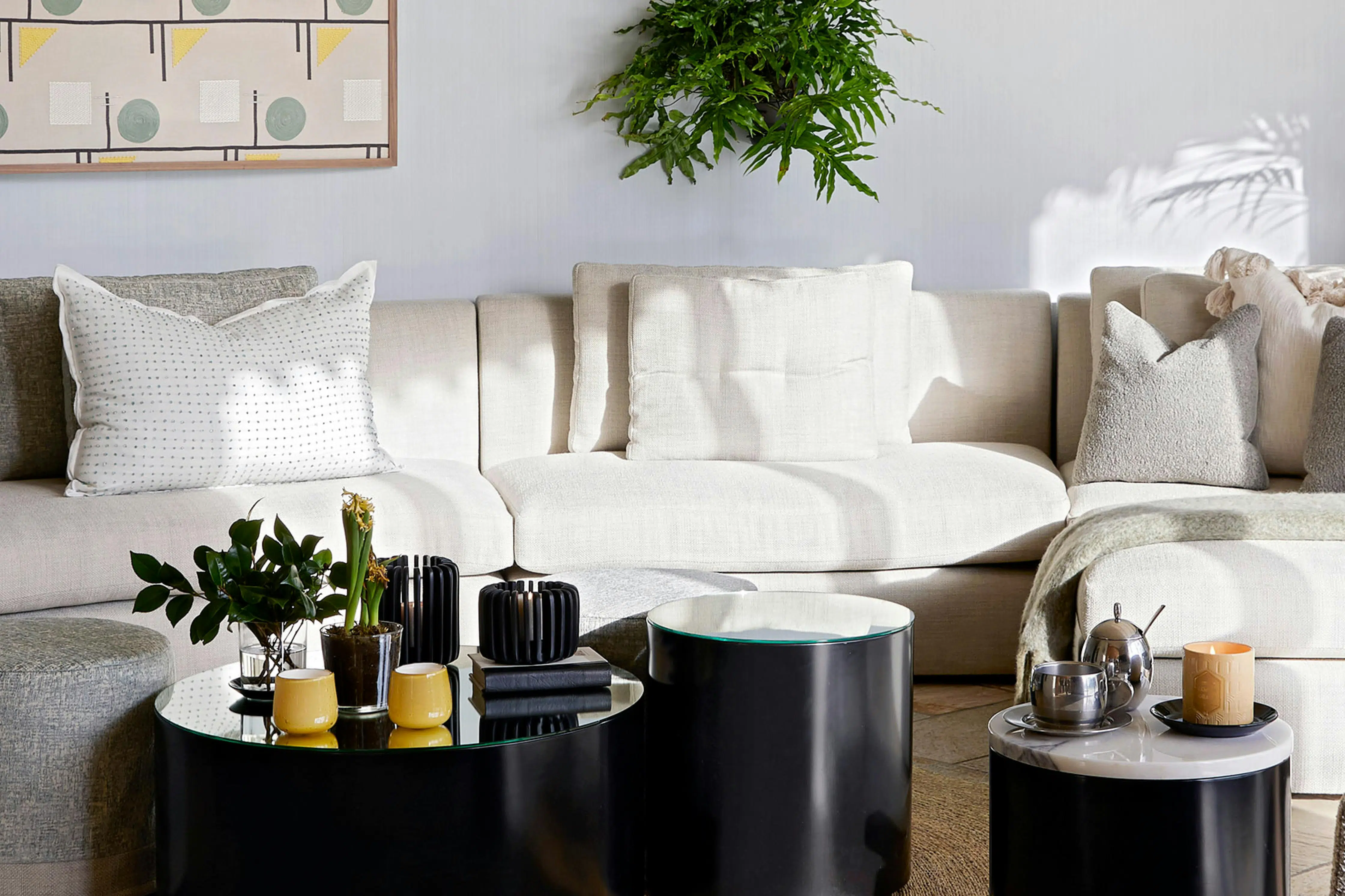 Soft edges and sinuous shapes give this modern family home its distinct identity. We used oval and elliptical forms to create a harmonious flow between spaces, giving this informal living room a much-needed update.