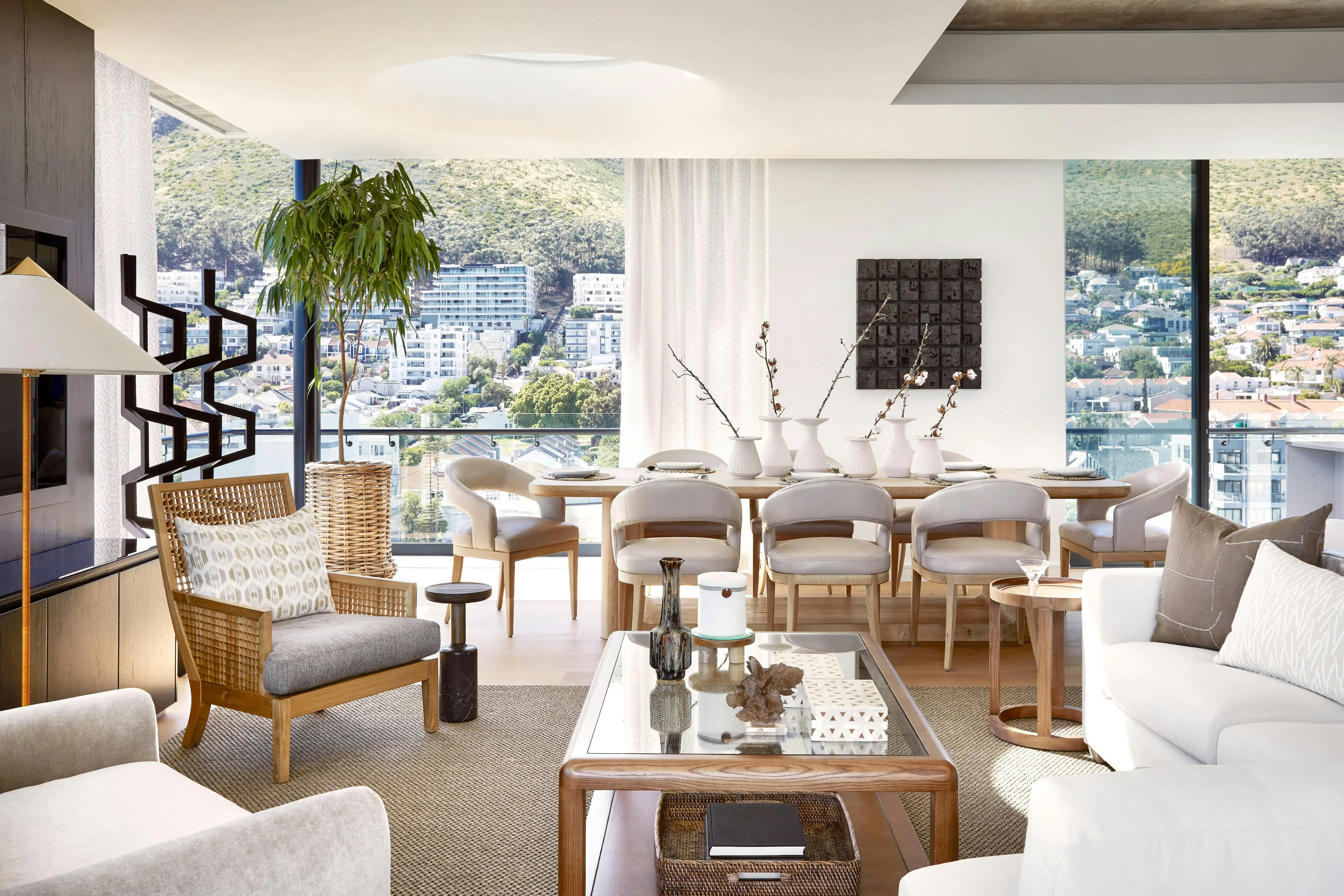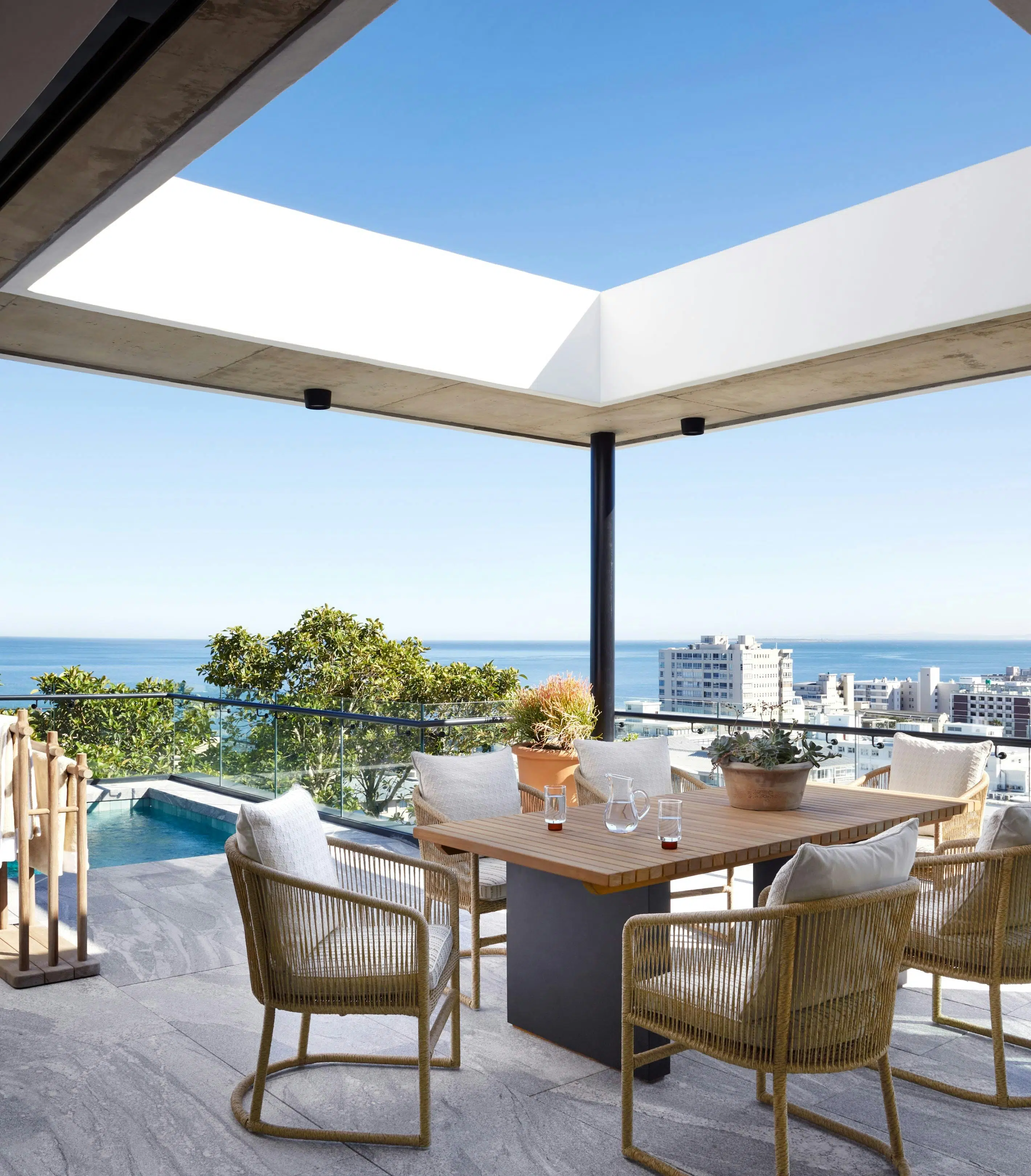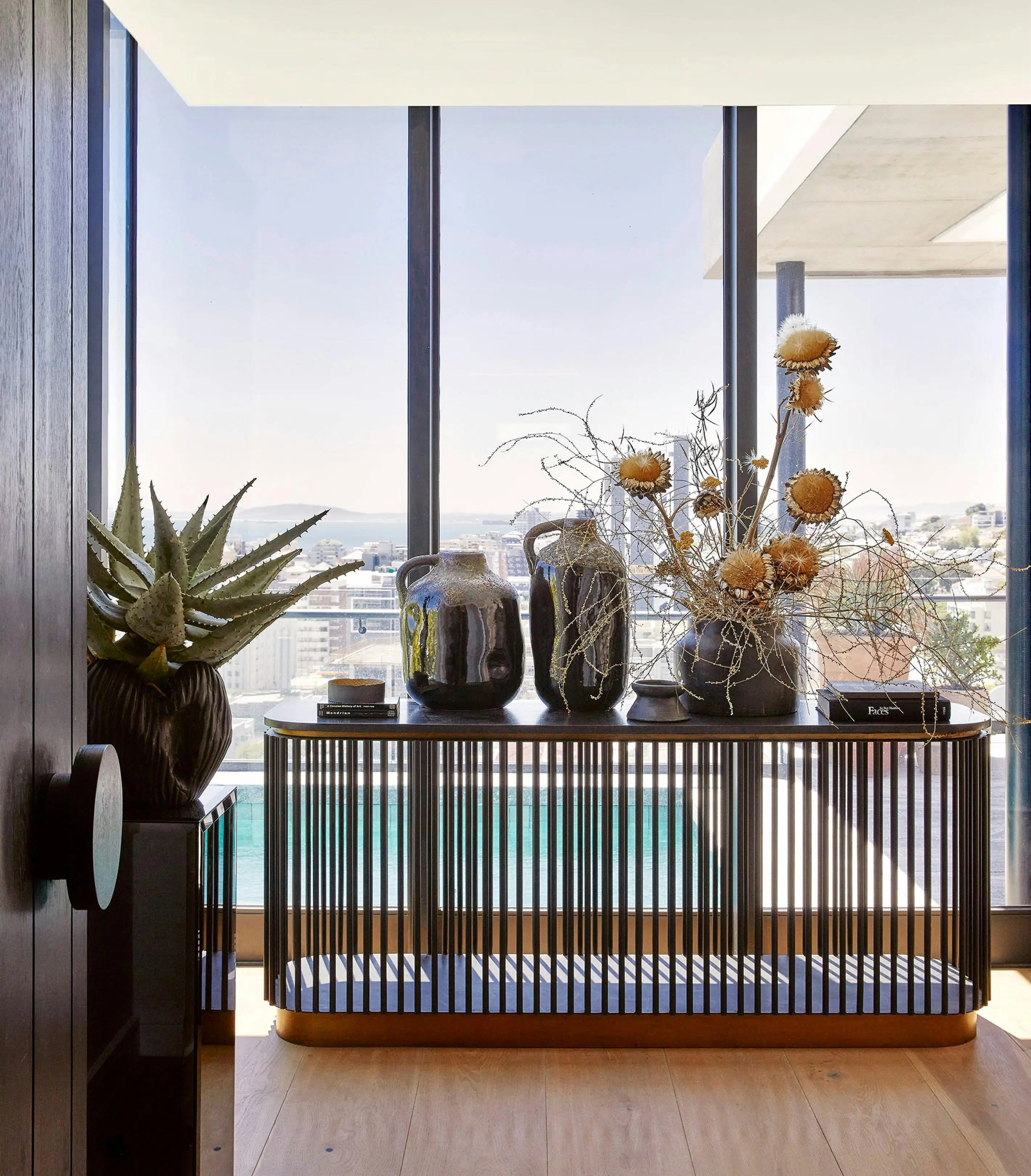 Perched above Sea Point, Cape Town, this contemporary penthouse boasts stunning views and floods of natural light. Emphasising sleek architectural lines, the design prioritises the surrounding beauty.